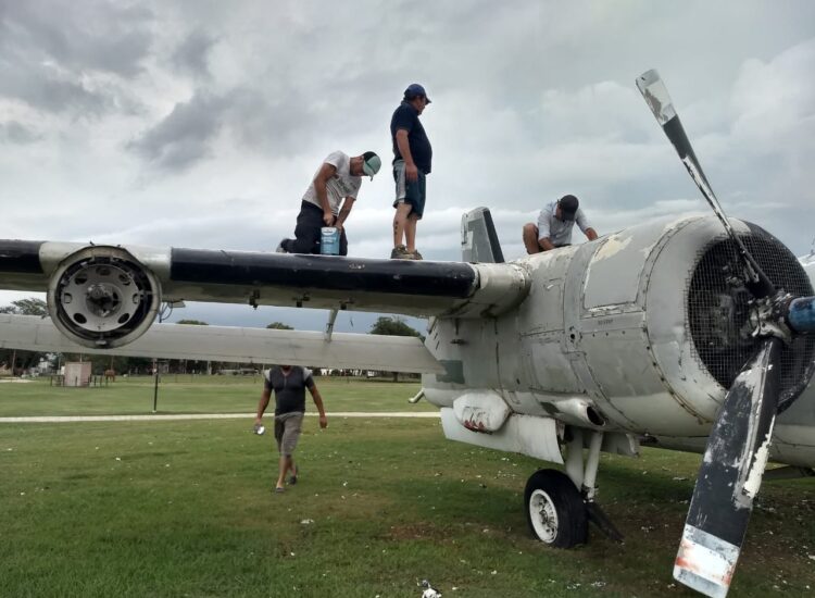 Continúan los trabajos de preparación para el montaje final de avión Tracker donado por la Armada Argentina en el...