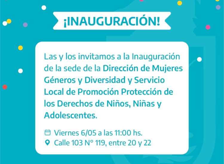 Convocamos para mañana a las 11 a la inauguración formal de la oficina de la dirección de Mujeres, Géneros...