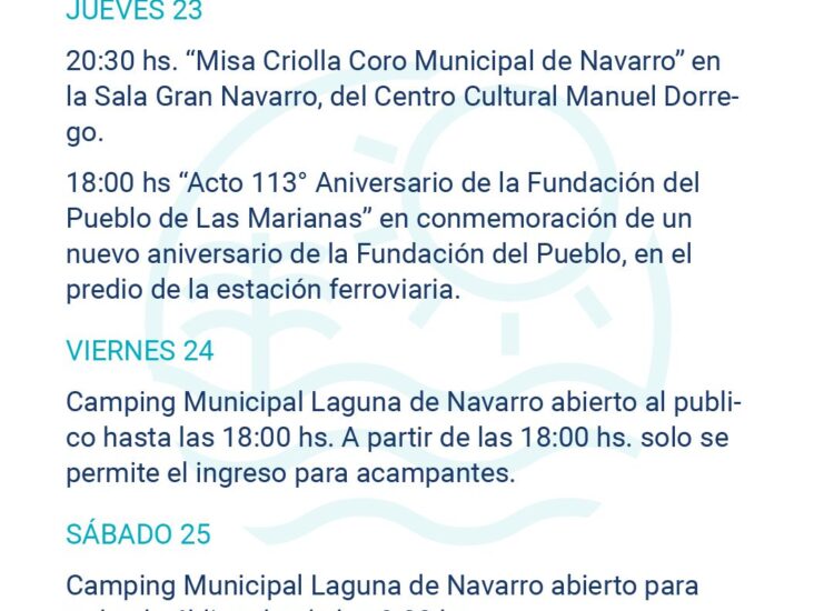 La Municipalidad de Navarro informa la agenda de actividades y servicios para estás fiestas. En cuanto a la Terminal...