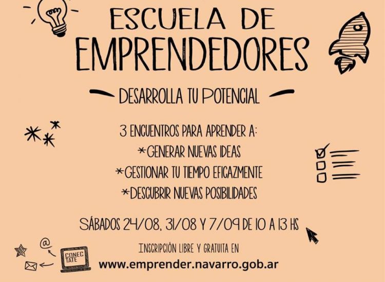 Nueva propuesta de la Escuela de Emprendedores de la Municipalidad de Navarro. Tres encuentros pensados para desarrollar tu potencial...
